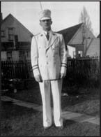 The limited income of the Club in these early years resulted in members searching far and wide for band equipment. Early on, the Club borrowed drums from the Knights of Columbus band. Later, several Club founders traveled all the way to Sandusky, Ohio, in an unsuccessful effort to secure musical instruments. One of the earliest purchases was a bass drum that was bought for $3.61. This was followed by the expense to have the Club logo painted on the drum at a cost of $2.41. Snare drum skins were $1 each, while bass drum skins were $2. This was no small sum during the Depression. In addition, the Club paid $562.40 for a set of 32 marching uniforms in the 1930’s. These costs were considerable in light of the fact that the Club treasury generally had less than $300 on hand at any given time in the 1930’s.